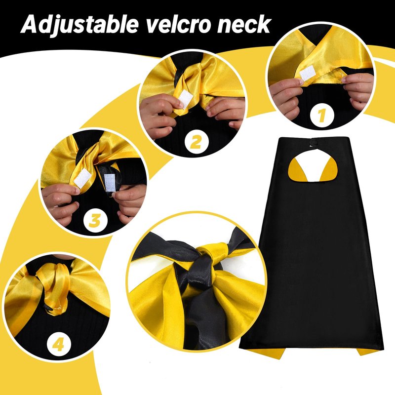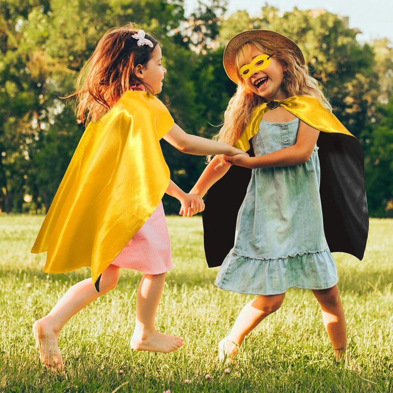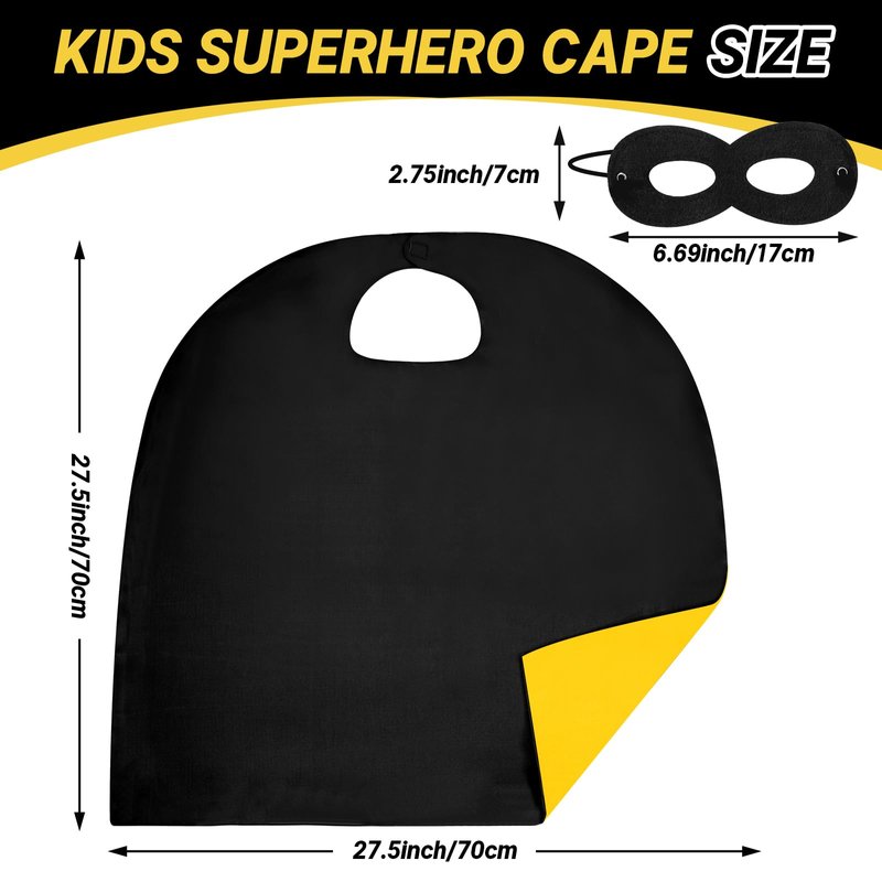 - Superhero Capes for Kids Set: You will get 1 x double-sided colors cape and 1 x superhero masks. Black capes perfect for child superhero journey