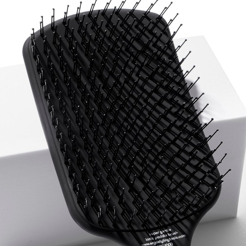 Experience salon-grade hair styling with the Ergo ERG1000 Super Gentle Large Paddle Brush.