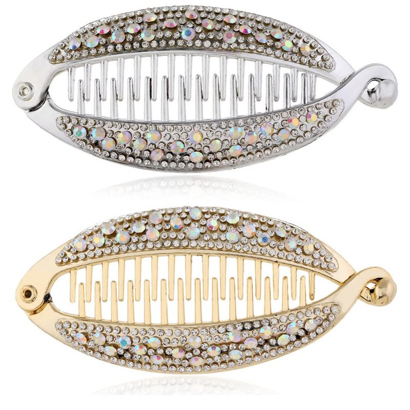 ericotry 2PCS Banana Hair Clip with Shining Rhinestone Fish Shape Clamp Ponytail Hair Twist Holder Hair Clincher Headdress for Women Girl