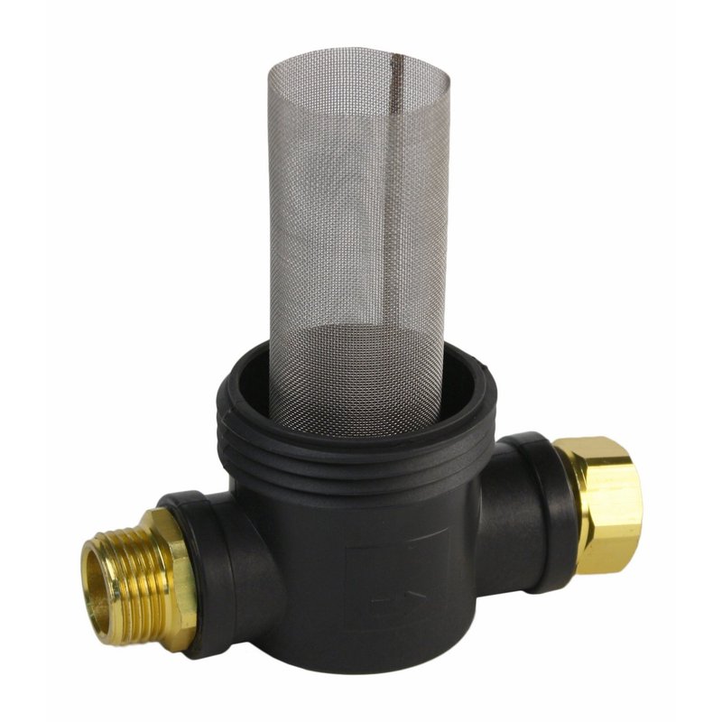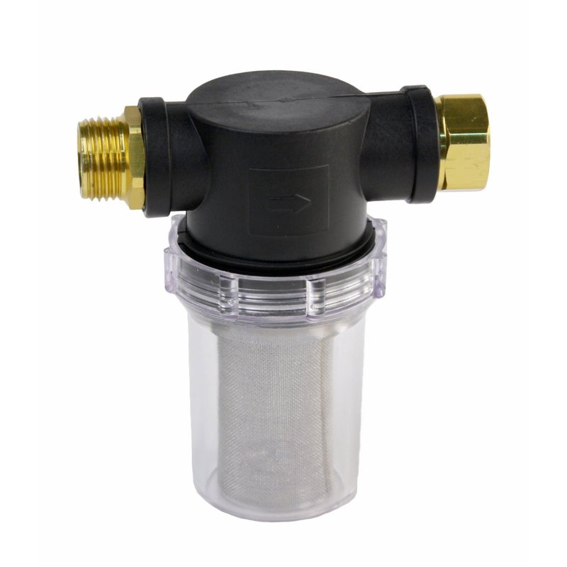 Erie Tools Garden Hose Inlet Filter connects the water spigot to the garden hose. It is designed to filter the water coming out of the spigot into the garden hose to help prevent debris from damaging the pressure-washer pump. Features durable aluminum connections. The filter and clear bulb are easy to remove for cleaning. This filter is suitable for use with most pressure washers.