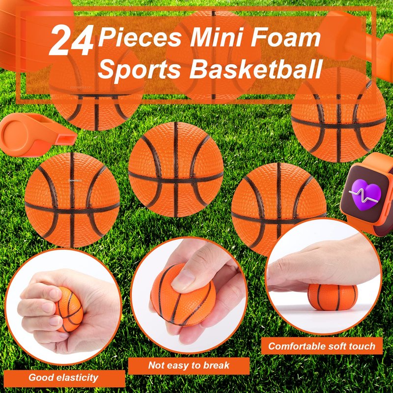 Erinnmy 24Pack Mini Basketball,Small Foam Basketball Stress Ball,Mini Sports Stress Balls,1.6 Inch Mini Basketballs for Kids,Mini Foam Sports Ball,Sports Theme Party Favors School Carnival Reward
