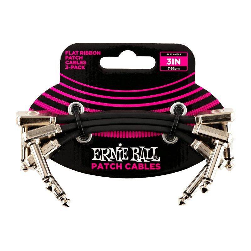Ernie Ball Flat Ribbon Patch Cable 3-Pack, 3 in, Black (P06220)