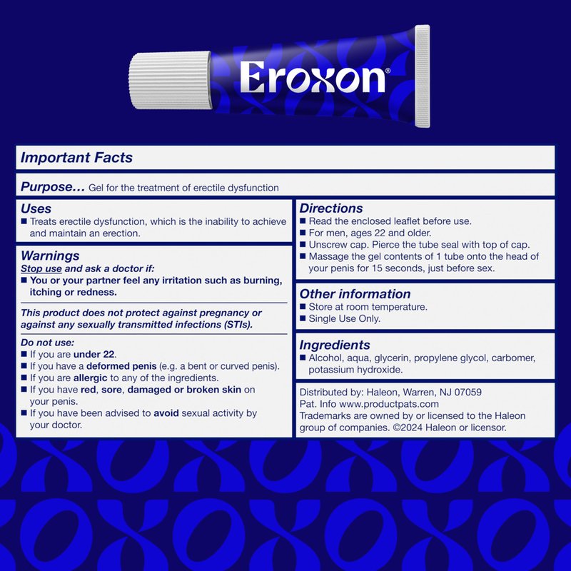 - 8 Single Use Tubes of Eroxon Erectile Dysfunction Treatment Gel, Clinically Proven Topical Treatment for Adult Men