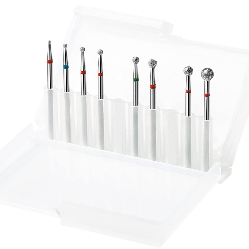 ERUIKA 8Pcs Ball Diamond Drill bits Set, 3/32'' Cuticle Clean Ball Head Nail Bit for Electric Machine, Nail File Gel Polishing Head Acrylic Manicure Pedicure Cuticle Tools(8PCS)