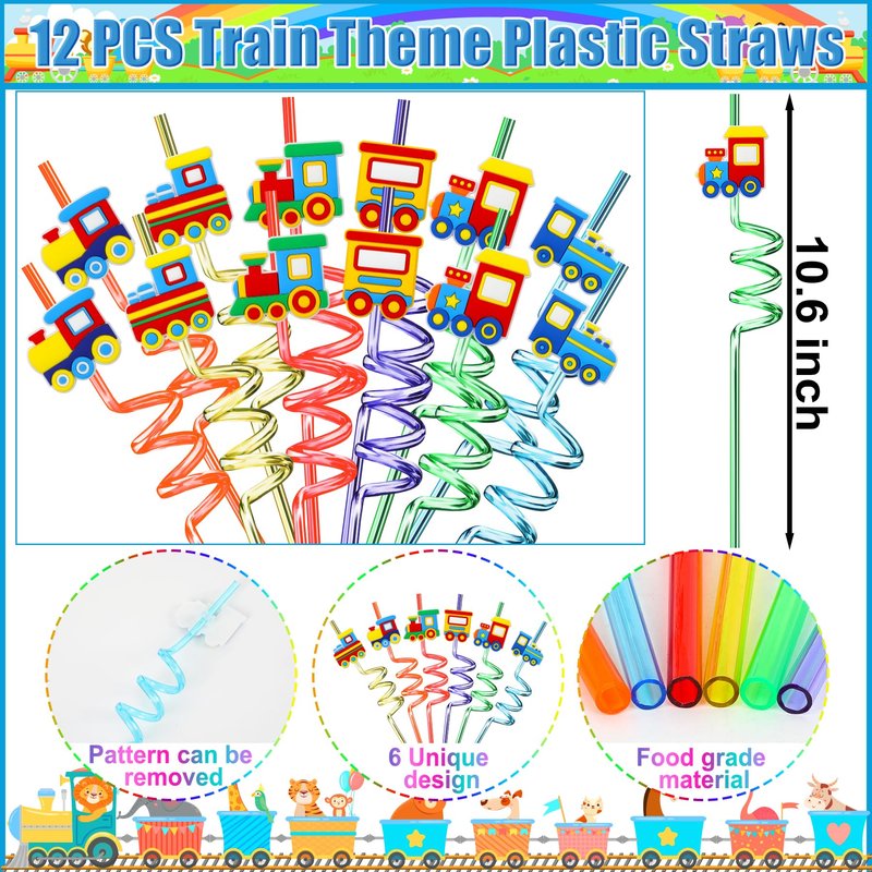 - PACKAGE INCLUDE - Train party favors includes 12 PCS Slap Bracelets, 12 PCS DIY Stickers(4 styles), 12 PCS Temporary Tattoos, 12 PCS Keychains(6 styles), 12 PCS Plastic Straws(6 styles) and 12 PCS Gift Bags(4 styles). Enough quantity to meet your party need.