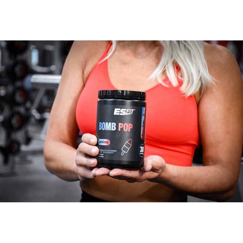 ES FIT Amino Powder - Pre and Post Workout with Electrolytes - BCAA 2:1:1 Ratio, Amino Acids, Superior Taste, Tested and Certified, Bomb Pop, 30 Servings
