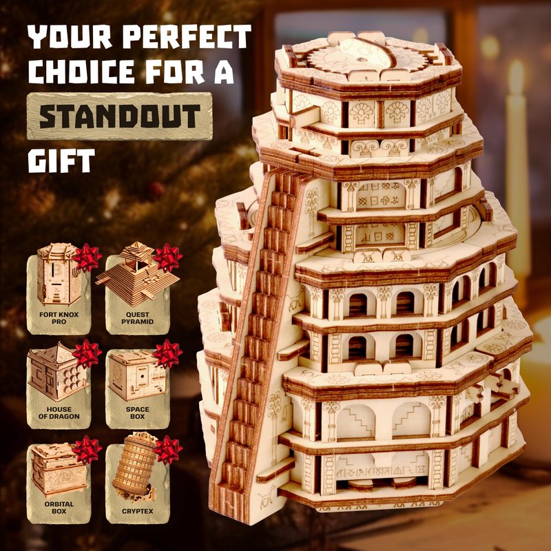 ESC WELT Quest Tower - 3D Escape Game Puzzle Box - Brain Teaser Puzzle for Adults & Teens - Eco-Friendly Wooden Escape Room Game - Mind Puzzle Game with Hidden Compartment - Family Games Puzzle