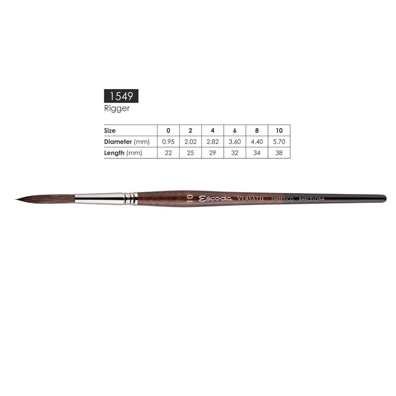 Escoda Versatil 1549 Series Artist Watercolor and Acrylic Paint Brush, Short Handle, Rigger, Size 4