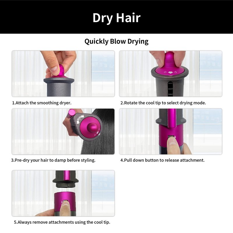 - 【Smoothing and Drying Simultaneously】Engineered to style damp hair, combines powerful airflow with controlled heat to dry your hair as it styles, even drying from root to tip. Smooth the hair at the end of styling for a silky, frizz-free finish.
