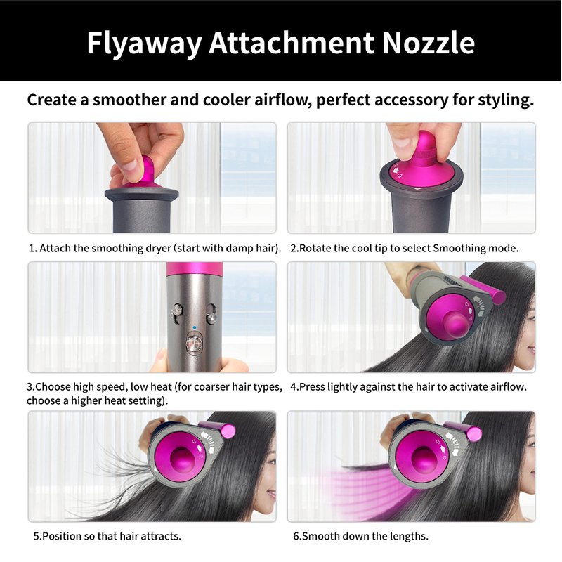 - 【Easy To Use】If you have an existing HS01 HS05, you can just buy this flyaway attachment nozzle for dyson airwrap. They didn't change how it connects so you can use them on the original. Allows you to create salon-ready results that reduce frizz for smoother looking hair.
