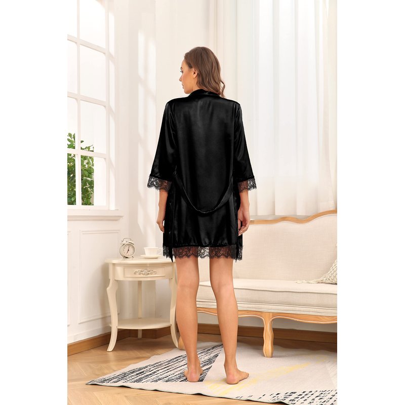 - Silk Robe:The satin robe with lace trim,removable belt,Casual and loose fit,sexy v neck knee length 3/4 sleeve bathrobes lounge wear at home,relaxing day or night
