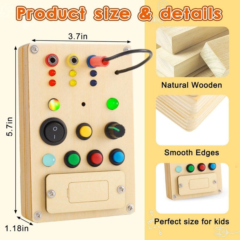 - Early Childhood Education Wooden Toy:Our sensory toddler toys improves your kids' fine motor skills.logic thinking,problem solving skills,the link of the switches and lights will help them understand cause and effects,it is also a autism sensory toys