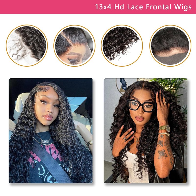 - 【Lace Front Wigs Human Hair Details】: 13x4 HD Lace Front Wigs Human Hair for Women, Glueless Wigs Human Hair pre Plucked Upgrade Swiss Lace (HD Transparent Color, Invisible, Soft and Breathable ), 20-30 Inch Available in Stock. Deep Curly Lace Front Wigs Human Hair Looks more Natural and Full.