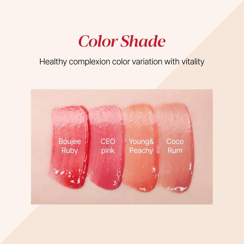 Achieve a luxurious, dewy, and plump water-gloss finish with a light feel using high-refractive index oil for extra shimmer. This long-lasting lip tint, featuring transparent and vibrant colors infused with pink-vitamin ingredients, provides a clear and rosy hue while ensuring comfort with a gentle texture. It is vegan-certified by EVE VEGAN from France, emphasizing a commitment to animal protection and sustainable packaging with FSC certification.