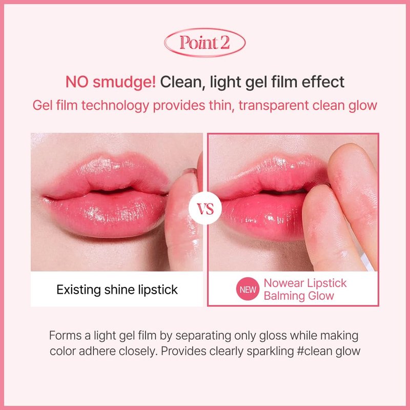 - SMUDGE-PROOF LIPSTICK: Boasting a clean, light gel film effect, this lipstick separates color and gloss, reducing the smearing phenomenon. With a design tailored to resist smudging, it maintains a pristine appearance. The addition of a lip balm effect implies it offers lightweight, non-sticky hydration, embodying the concept of 'glasting lip'