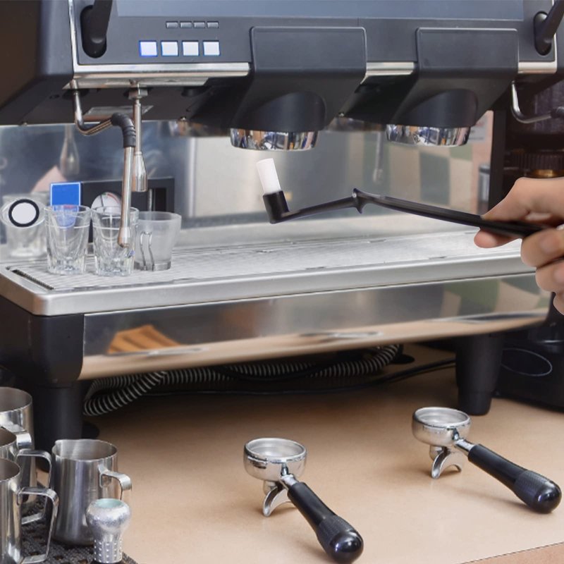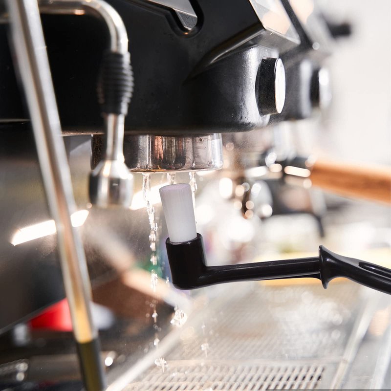 - 【PROFESSIONAL CLEANING BRUSH】 Unique design and water deflecting fins keep your hands cool and dry when back flushing; The angled brush and pick are suitable to clean out the compacted grounds.