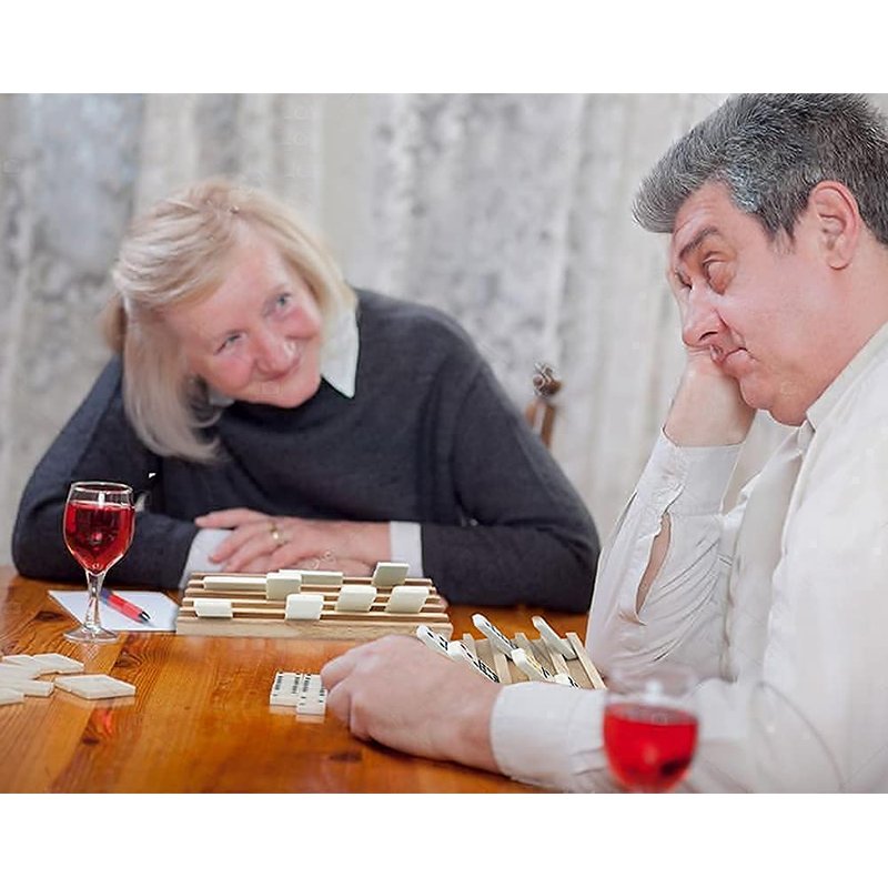 - Includes: 8 Wood Dominoes Racks