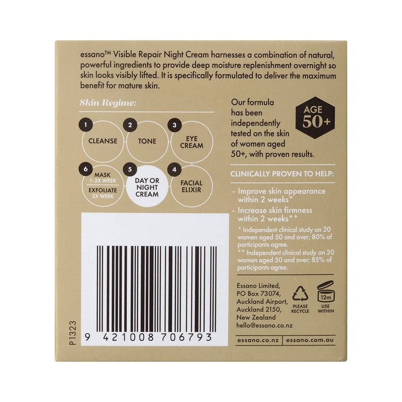 - NIGHTTIME MOISTURE REPLENISHMENT: Essano Visible Repair Night Crème combines natural ingredients to provide deep hydration overnight, helping skin feel more hydrated and appear rejuvenated by morning.
