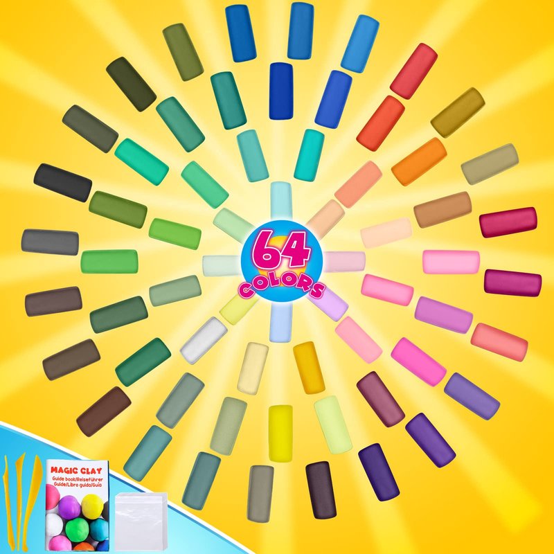ESSENSON Air Dry Clay 64 Colors, Modeling Clay for Kids, DIY Molding Magic Clay, Gift for Kids