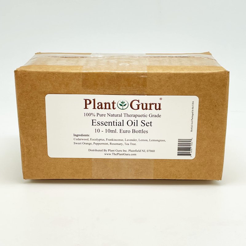 - Set Includes 10 - Plant Guru 10ml. Bottles. Tea Tree, Lavender, Eucalyptus, Lemongrass, Peppermint, Sweet Orange, Lemon, Cedarwood, Frankincense, Rosemary.