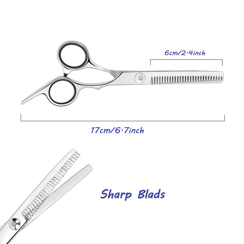 - ★SIZE★The hair scissors about 6.7inch/17cm and blades are about 2.4inch/6cm,The shorter thumb handle and the extended finger support make your hair cutting much easier.