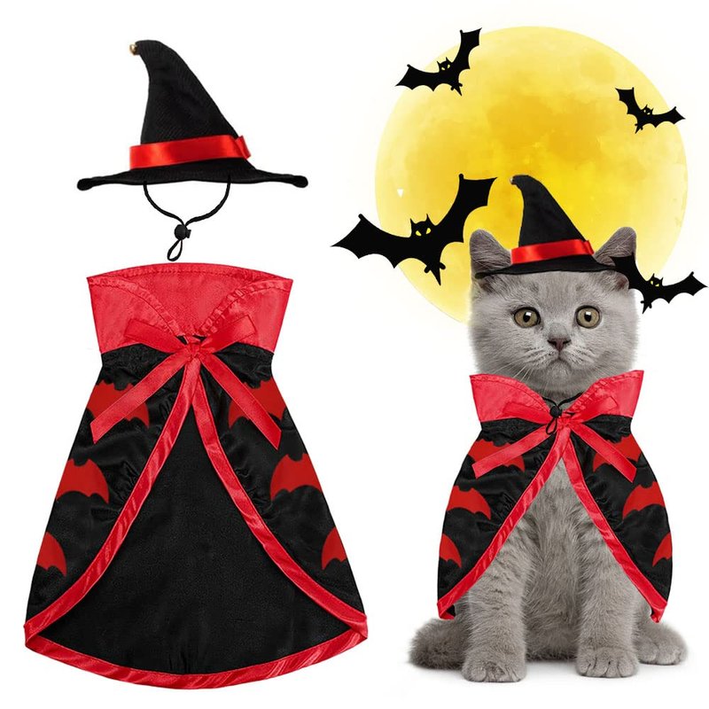 - 🎃【Occasion】: This Halloween pet decoration is suitable for various occasions, such as Halloween decorations/fall decorations/masquerade/cosplay party/family party decorations/carnivals. Puppy kitten witch costumes are Halloween must-haves to make your pets stand out on Halloween party. You can gift this red bats cats dogs costume to your pets, or friends and family with pets, for a fun party time.