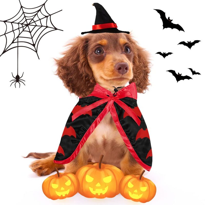 Estivaux Pet Halloween Costumes Dogs Cats Halloween Vampire Pets Costume Cape with Black Red Witch Hat Wizard Cats Cosplay Clothes Apparel for Small Dogs Cats Halloween Party Decorations
