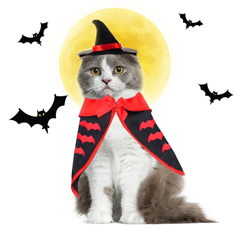 - 🎃【Style】: The Halloween pet costumes are designed with delicate Halloween bats pattern. The black red hat is cute and full of Halloween elements, top with a crisp sound little bell, adding a strong Halloween atmosphere.