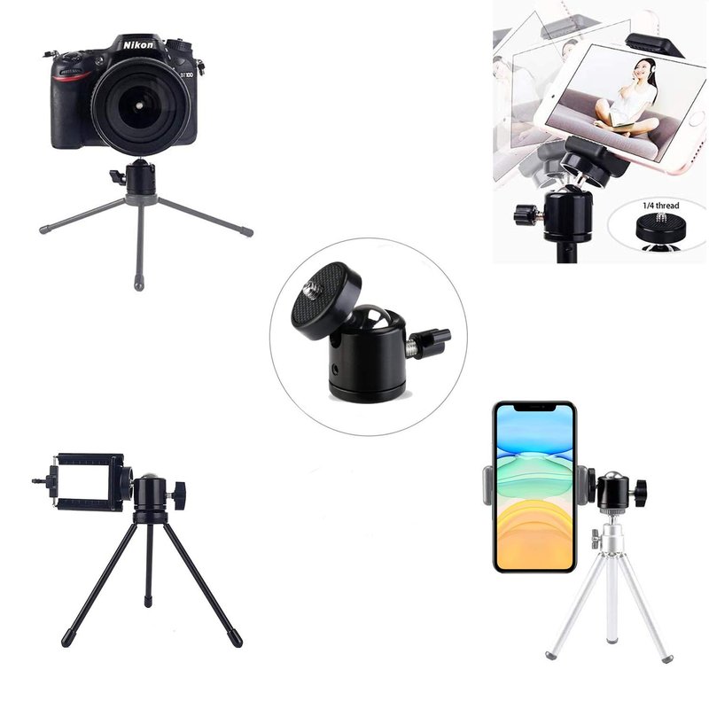 - ✅STRONG AND DURABLE:Made of aluminium alloy,strong and durable. This ball heads can withstand max loads 3.3lbs, a quick knob to lock solidly, and move smoothly. Rubber Mat on the tripod base to prevent scratches to your devices.