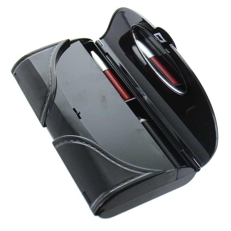 An elegant carry around all in one makeup kit. It is light weight and fits in your purse and has all you need for a quick patch up.