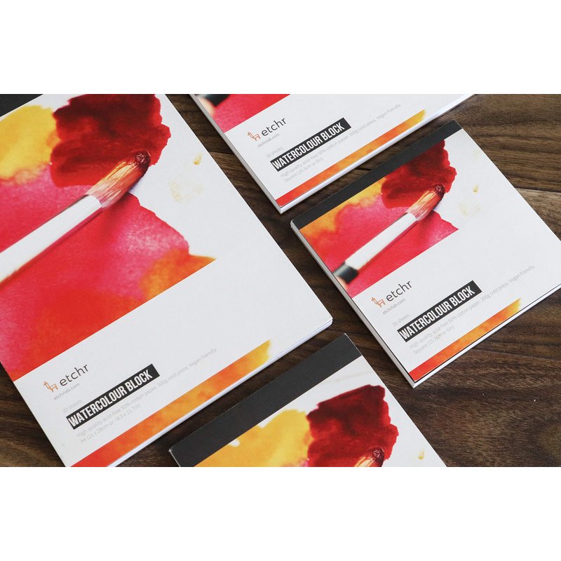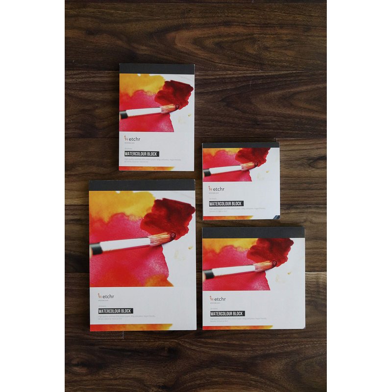 - Great for On the Go - ETCHR's watercolor block paper makes professional plein air painting cleaner and easier! Achieve professional, wrinkle-less, results thanks to this watercolor block's sealed edges, specifically design with professional watercolor artists in mind!