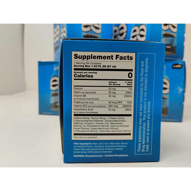 - Berry Flavored Energy Shots: Contains 6 berry flavored energy shots for a quick boost of energy