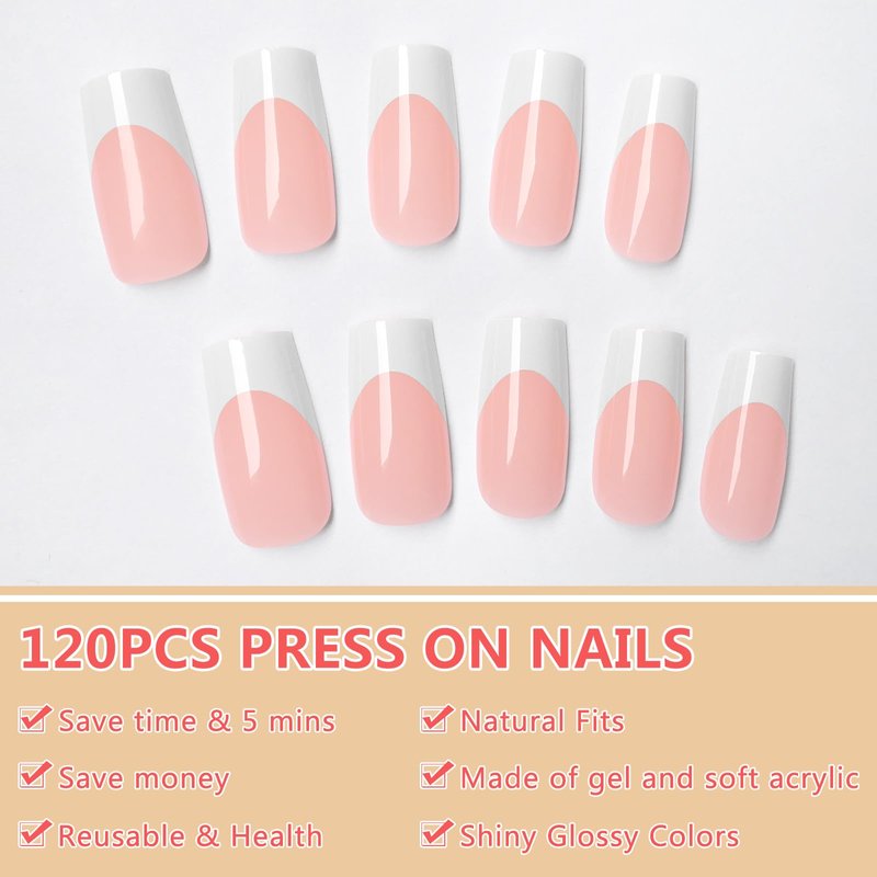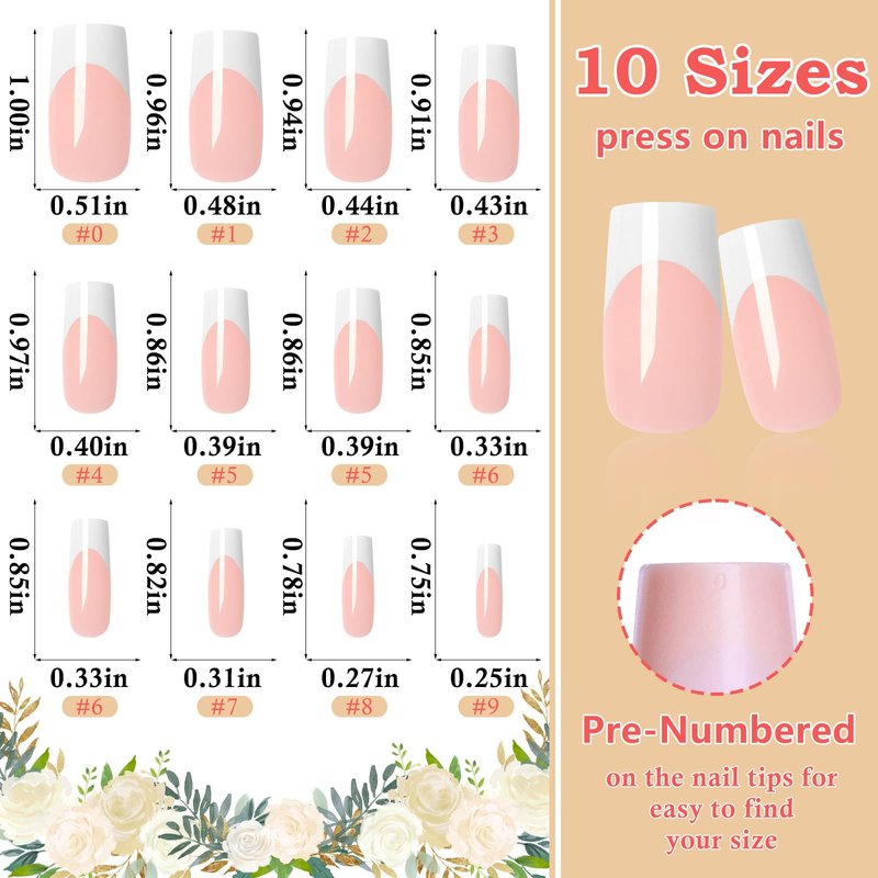 - Easy to Use and Remove: The French nails press on square fake nails pack contains liquid nail glue and nail adhesive tabs, allowing you to achieve professional manicures in minutes for any occasion. Our medium french tip press on nails are long lasting and will maintain a glossy look until you remove them