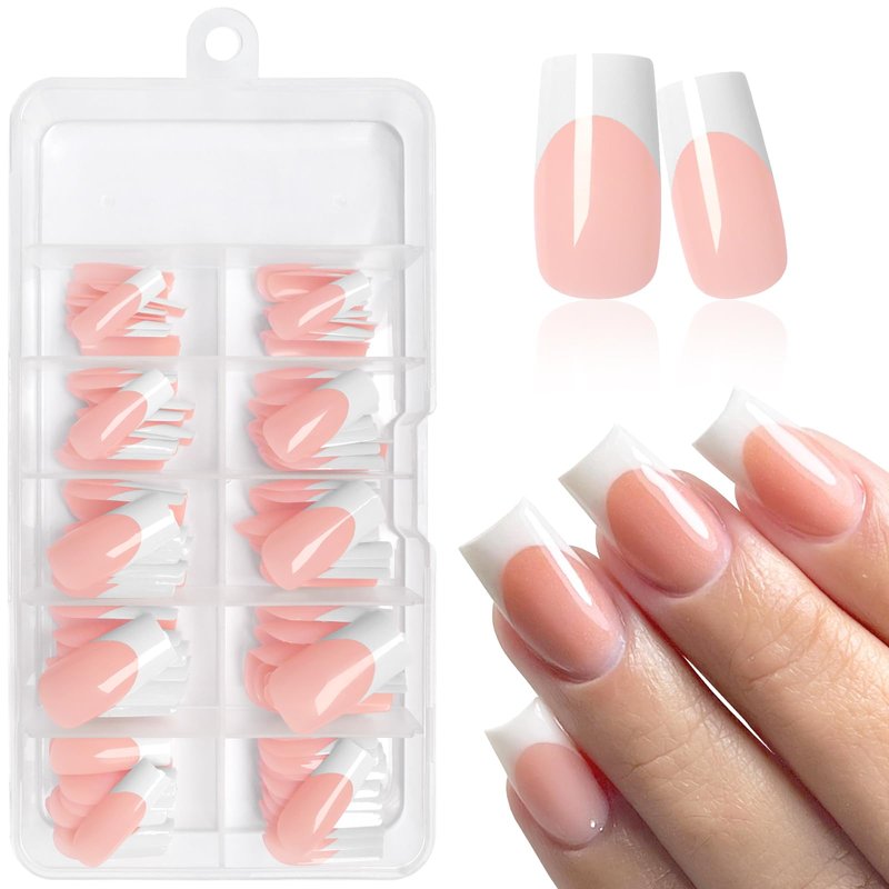 - Classic French Tip Press on Nails: The medium square shape nails are sleek and modern, and our french press on nails come pre-painted with white french nail tips and designed with sheer nude pink nails. This medium square fake nails kit provides a natural nude color, shiny glossy finish, square shape, and medium length press ons nails
