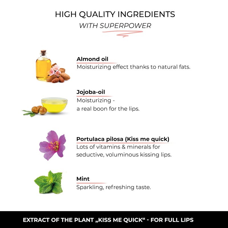 - Intensive moisture: Intensively nourishes the lips and ensures long-lasting suppleness and moisture. Enriched with extract of South American plant: Kiss-Me-Quick.