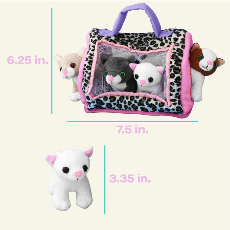 - TAKE YOUR FURRY FRIENDS ON THE GO – All the stuffed kitties fit snugly in their plush carrier, so they can go on adventures to school or Grandma's house! Carrier measures 7.5 (L) x 5.25 (D) x 6.25 (H) inches