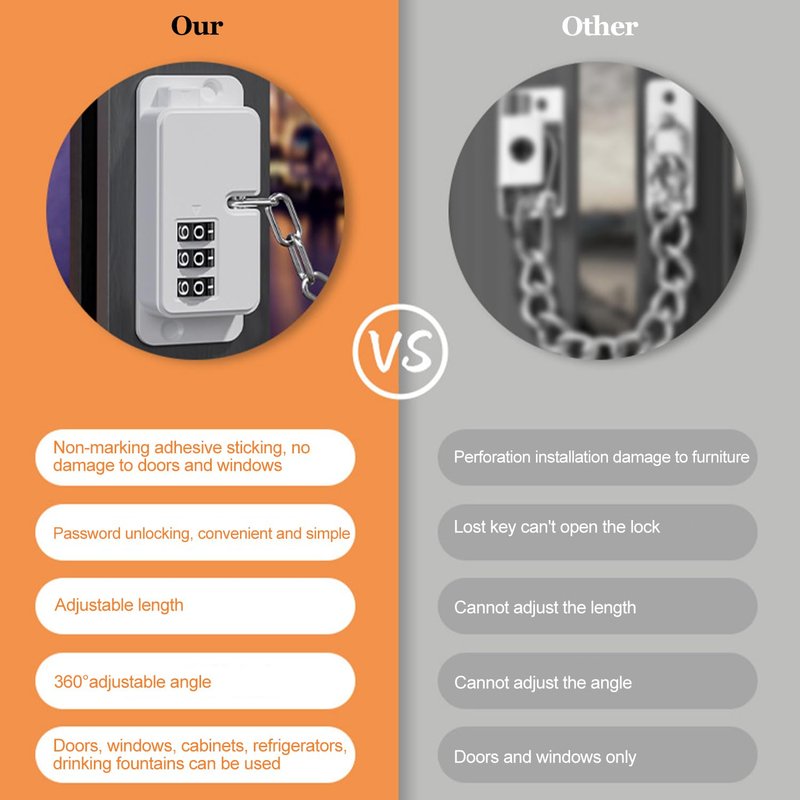 - 【Easy to Install】Come with 2-pack combination fridge locks, adhesive, and screws for you. You can choose these strong adhesives which means you don't need to drill any hole when installing, while you can also apply screws to screw the lock to a shed or door for double safety if the surface can be drilled.