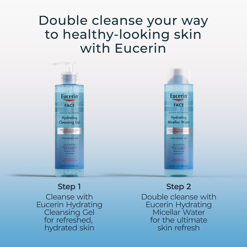 Eucerin Face Gentle Cleansing Hydrating Micellar Water, Face Cleanser and Makeup Remover with Hyaluronic Acid, 13.5 Fl Oz Bottle