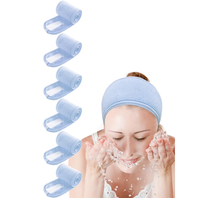EUICAE Spa Headband Hair Wrap Sweat Headband Head Wrap Hair Towel Wrap Non-slip Stretchable Washable Makeup Headband for Face Wash Facial Treatment Sport Fits All White (Baby blue)