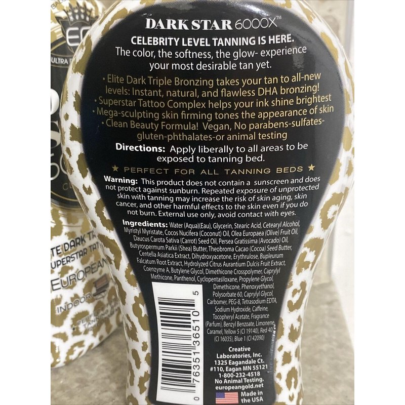 European Gold Dark Star 6000X Ultra Dark Tanning Lotion 12oz Elite Triple Bronze