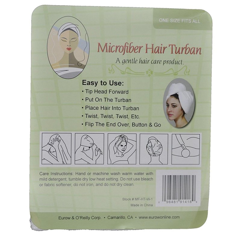 Eurow Microfiber Hair Towel Turban Wrap - White - 1 Pack