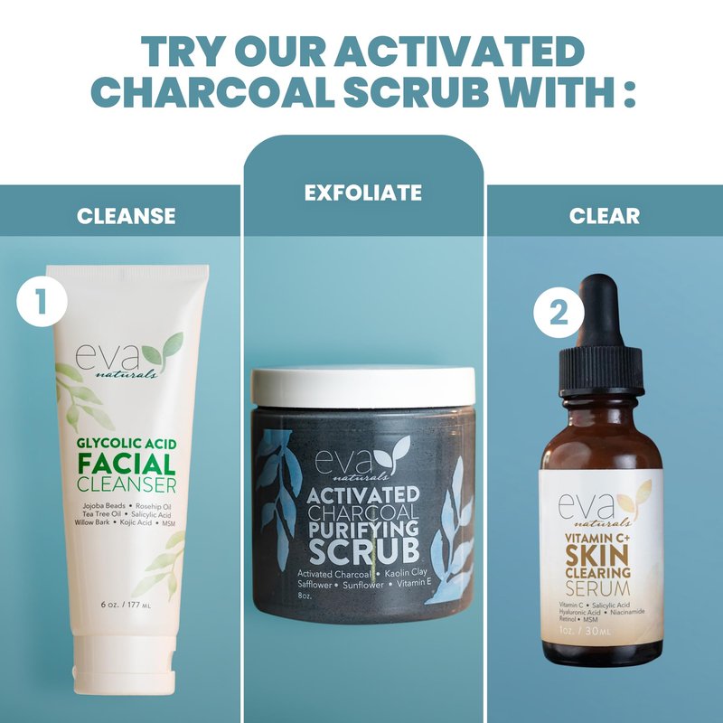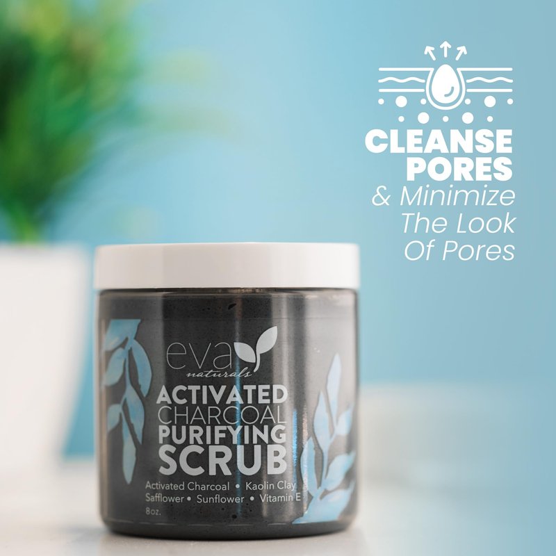 Eva Naturals Activated Purifying Charcoal Scrub- Facial Exfoliator and Exfoliate for Face- Face Scrub for Women- Face Exfoliator, Exfoliating Face Wash, Facial Scrub, Face Exfoliant