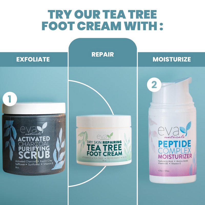 - Give Your Feet The Refreshment They Deserve: Kick up your tired, aching feet and apply a bit of Eva Naturals Tea Tree Foot Cream, and experience the cooling, relaxing effects of peppermint and aloe.