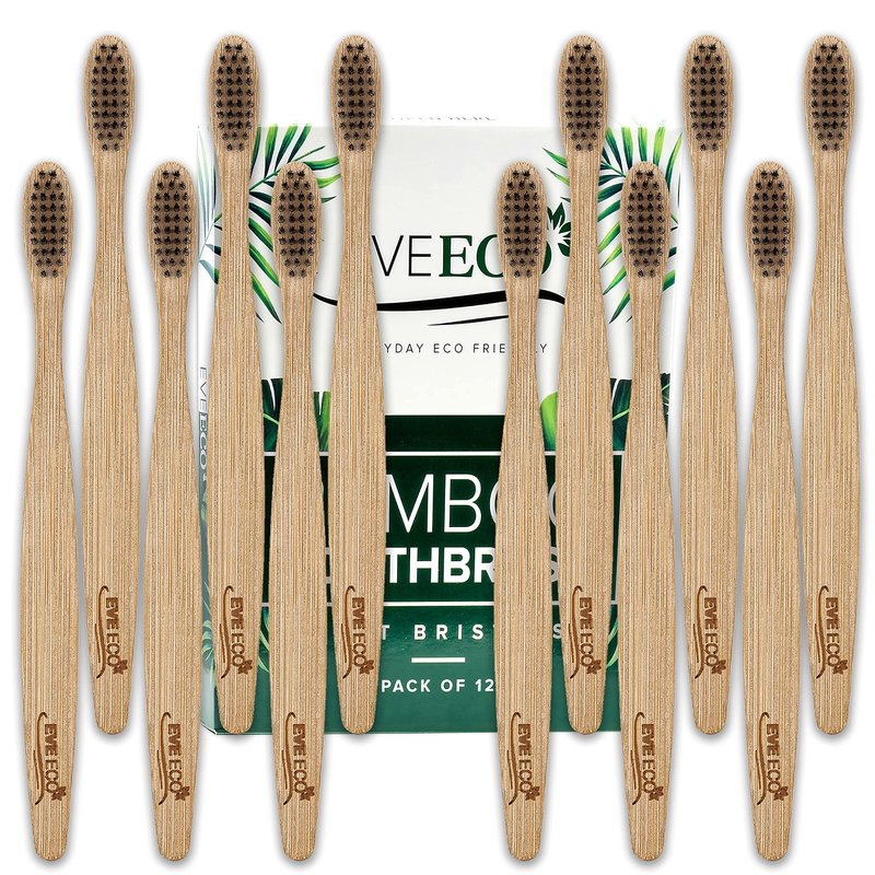 EveEco 12 Count I Bamboo Toothbrush I Soft Bristles Best for Sensitive Gums I Charcoal I Vegan I Natural Wood I BPA Fee I Recyclable I Compostable I Biodegradable | Environmentally Friendly