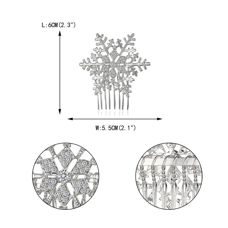 - Snowflake Hair Comb Length: 6cm(2.3"), Width: 5.5cm(2.1"), Weight: 16g.