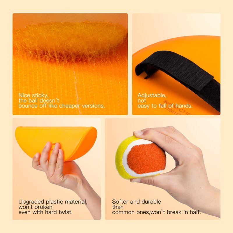 - 【Softer and High-quality Ball Set】Old version's tennis balls are very hard without elasticity, which is hard for kids to catch it. Our balls are much stronger and softer yet with better stickiness, so that kids can catch the balls easily and comes with comfortable feel, kids won’t lose their fun as they can keep catching the ball. Always have lots of fun for your little ones, even to family reunion game.