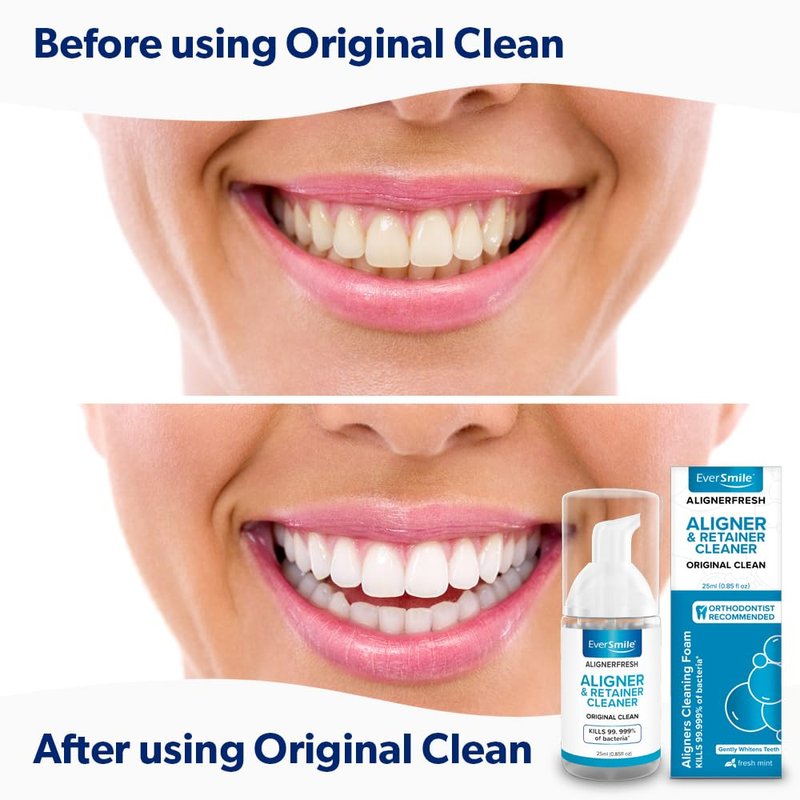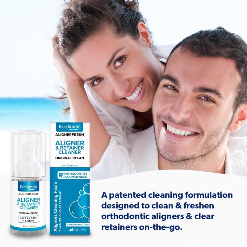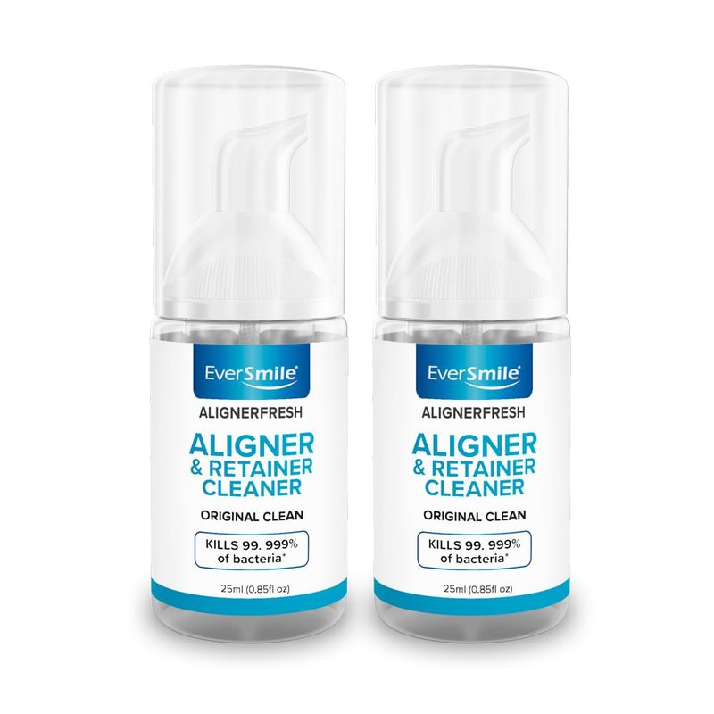EverSmile AlignerFresh Original Clean-The Original Cleaning WhiteFoam On-The-Go Clear Retainer Cleaner. Eliminates Bacteria, Whitens Teeth & Fights Bad Breath (25ml - 2 Pack)