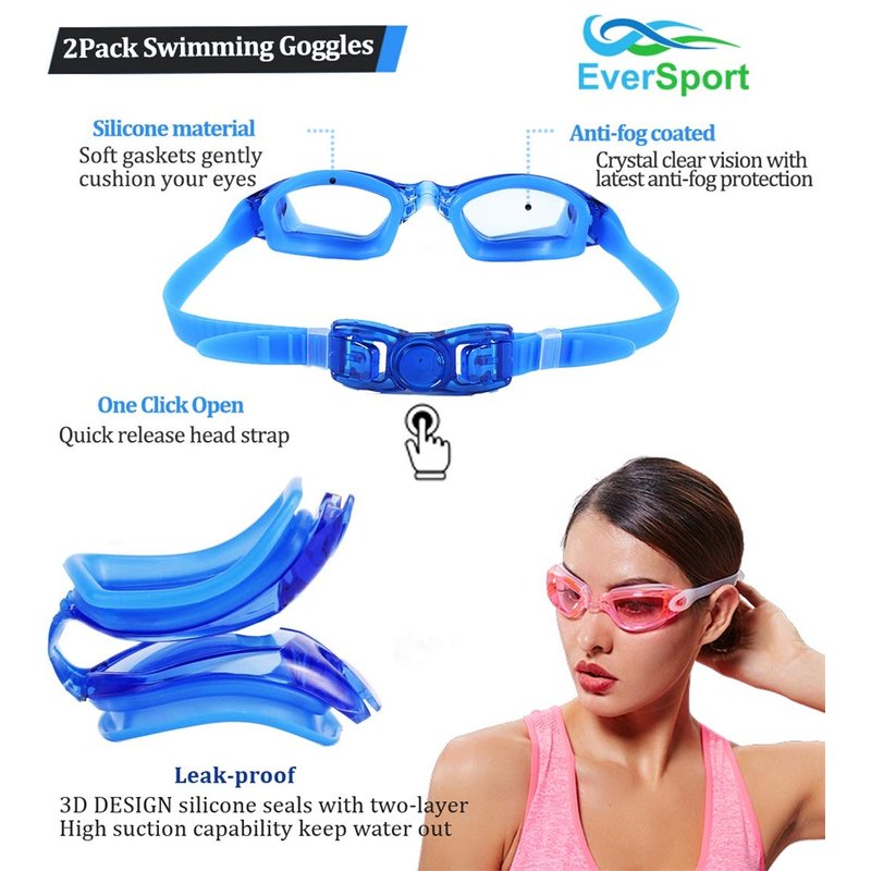 - ✅BROADER AND CLEARER VIEW: With our special-designed lens, you can surely enjoy a much better clarity. You can also see broader and clearer with anti fog protection of our high quality EverSport swimming goggles. PLEASE REMEMBER: this goggles can not be used by people who have over 100 degrees myopia eyes.