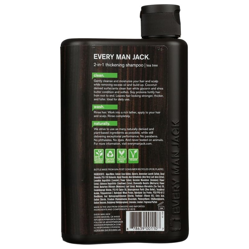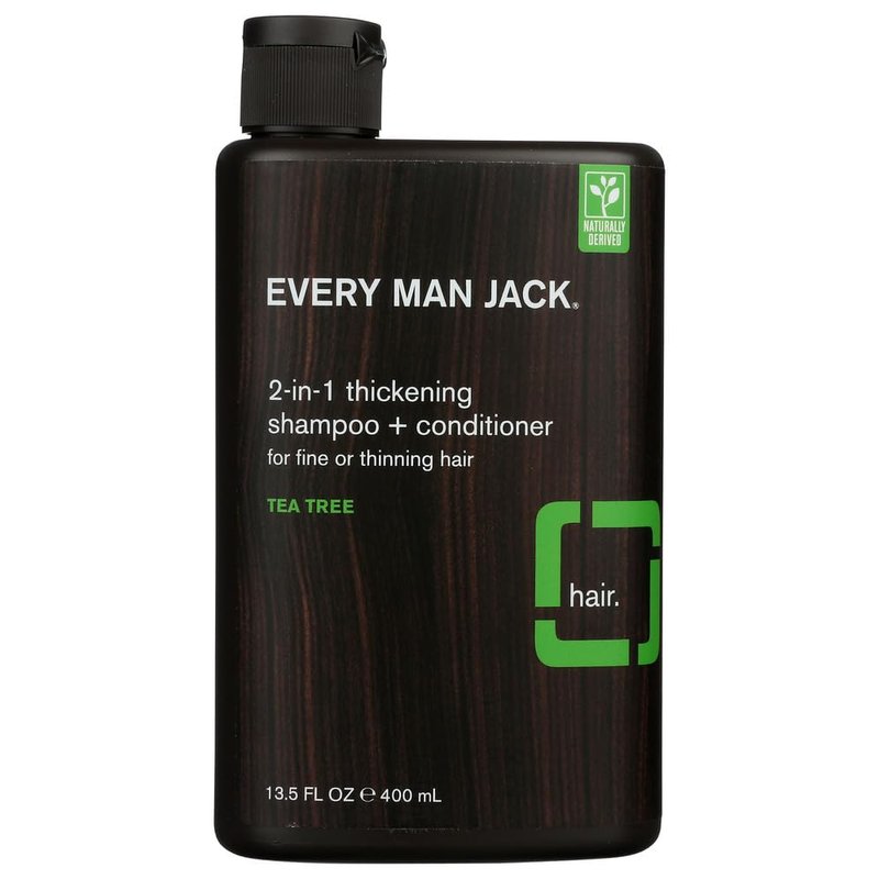 Every Man Jack 2 in 1 Thickening Shampoo and Conditioner, 13.5 oz, Vegan, Tea Tree, Shea Butter for Thick Hair, Liquid