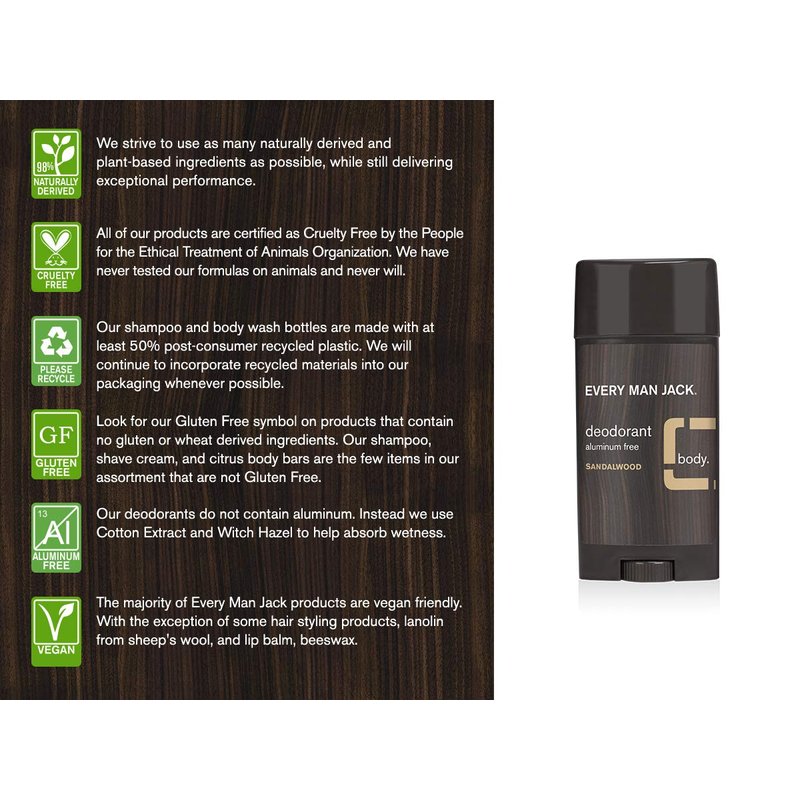 Every Man Jack Men's Natural Deodorant - Sandalwood | 3-ounce Twin Pack - 2 Sticks Included | Naturally Derived, Aluminum Free, Parabens-free, Pthalate-free, Dye-free, and Certified Cruelty Free